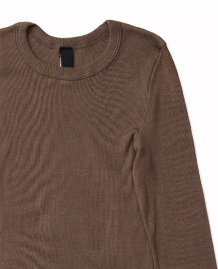 カシミヤ混リブのタイトクルーネックロングスリーブTシャツ。