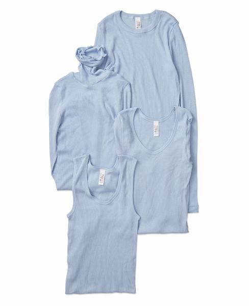 細番手の糸で柔らかく薄く編まれたリブは、インナーとして着ていることを忘れてしまうほどの優しい肌触り。